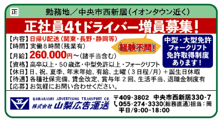 今回は、4tドライバーを募集します。(経験不問・経験者歓迎)